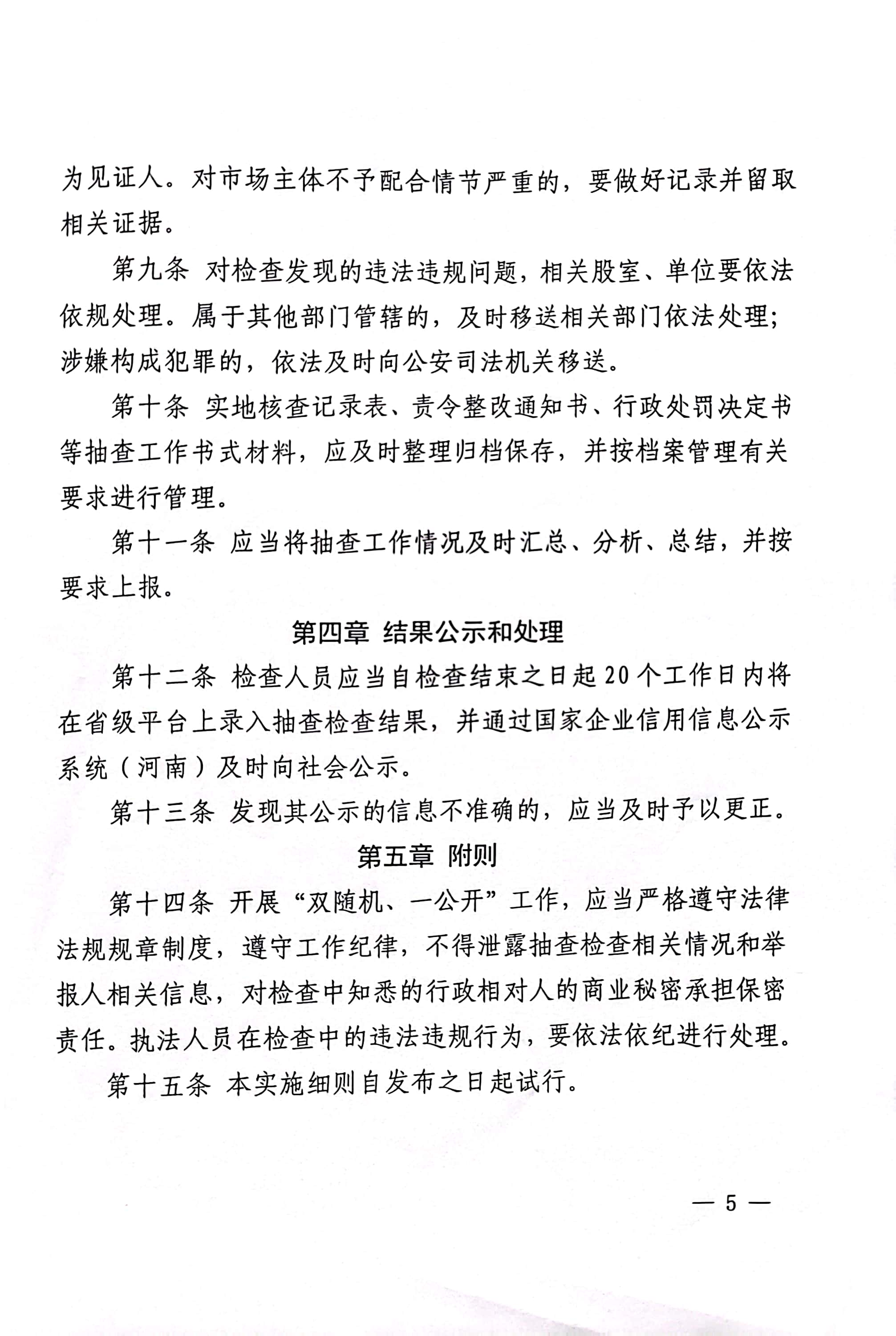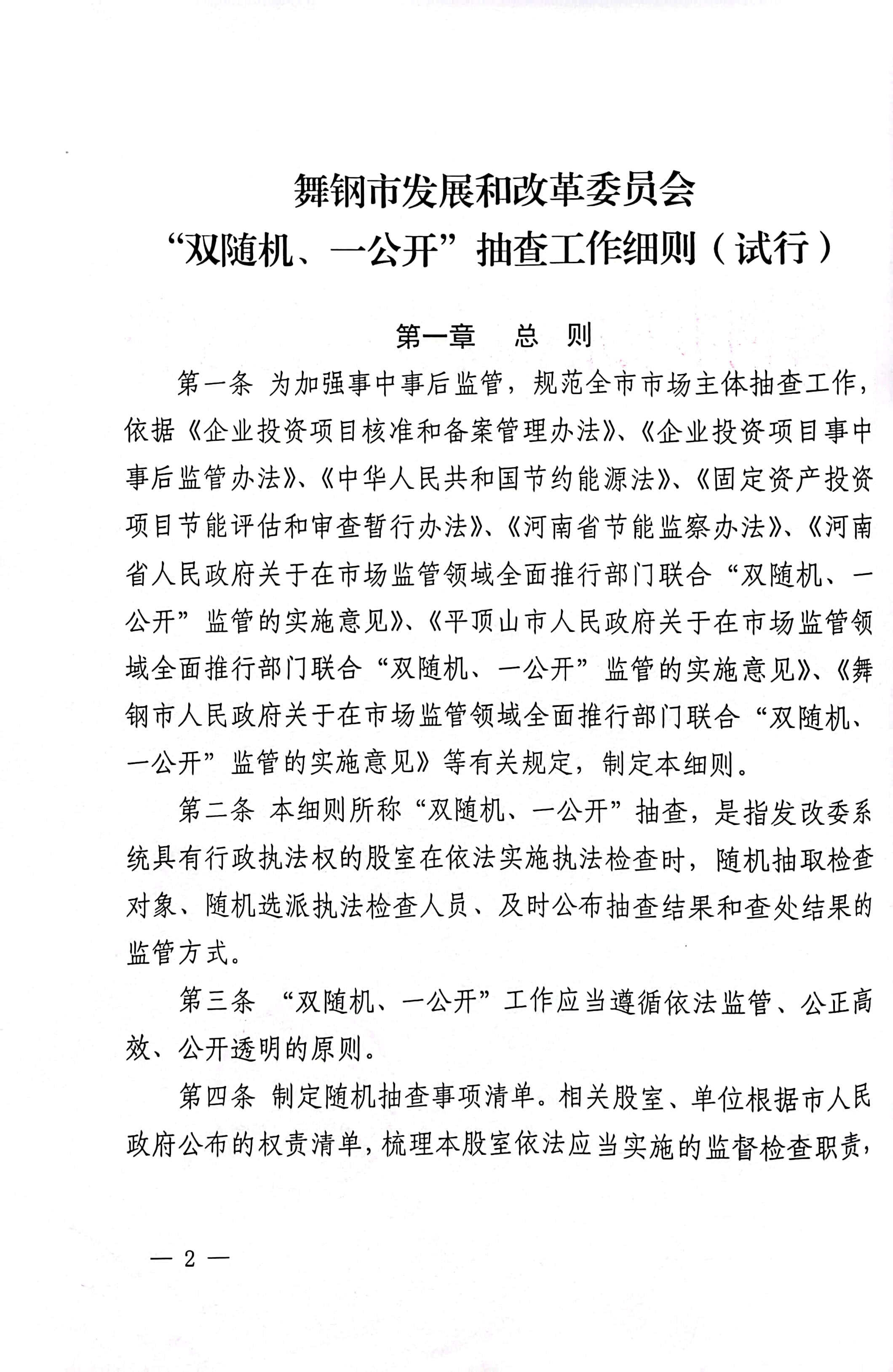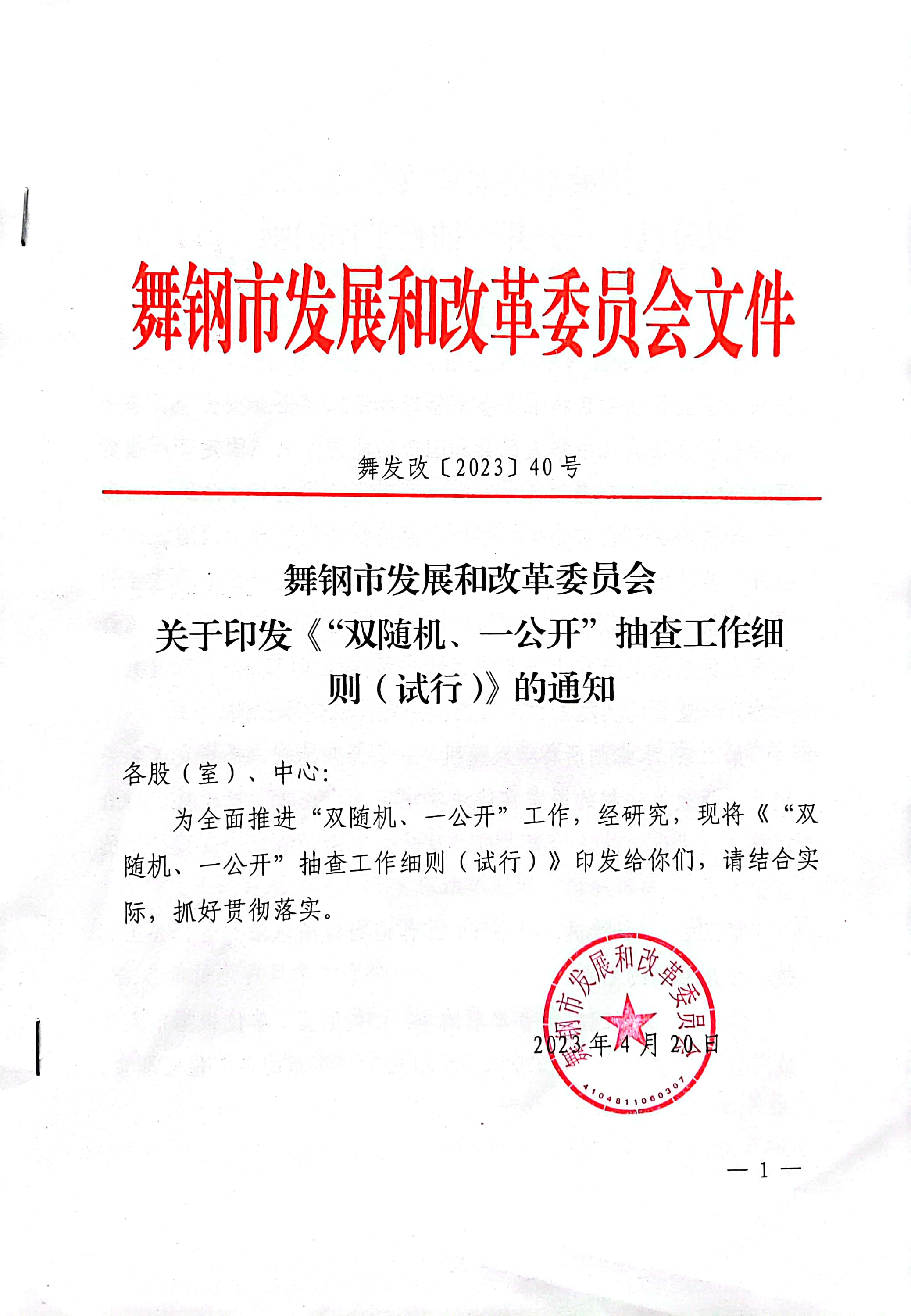 舞钢市发展和改革委员会关于印发《“双随机、一公开”抽查工作细则(试行)》的通知