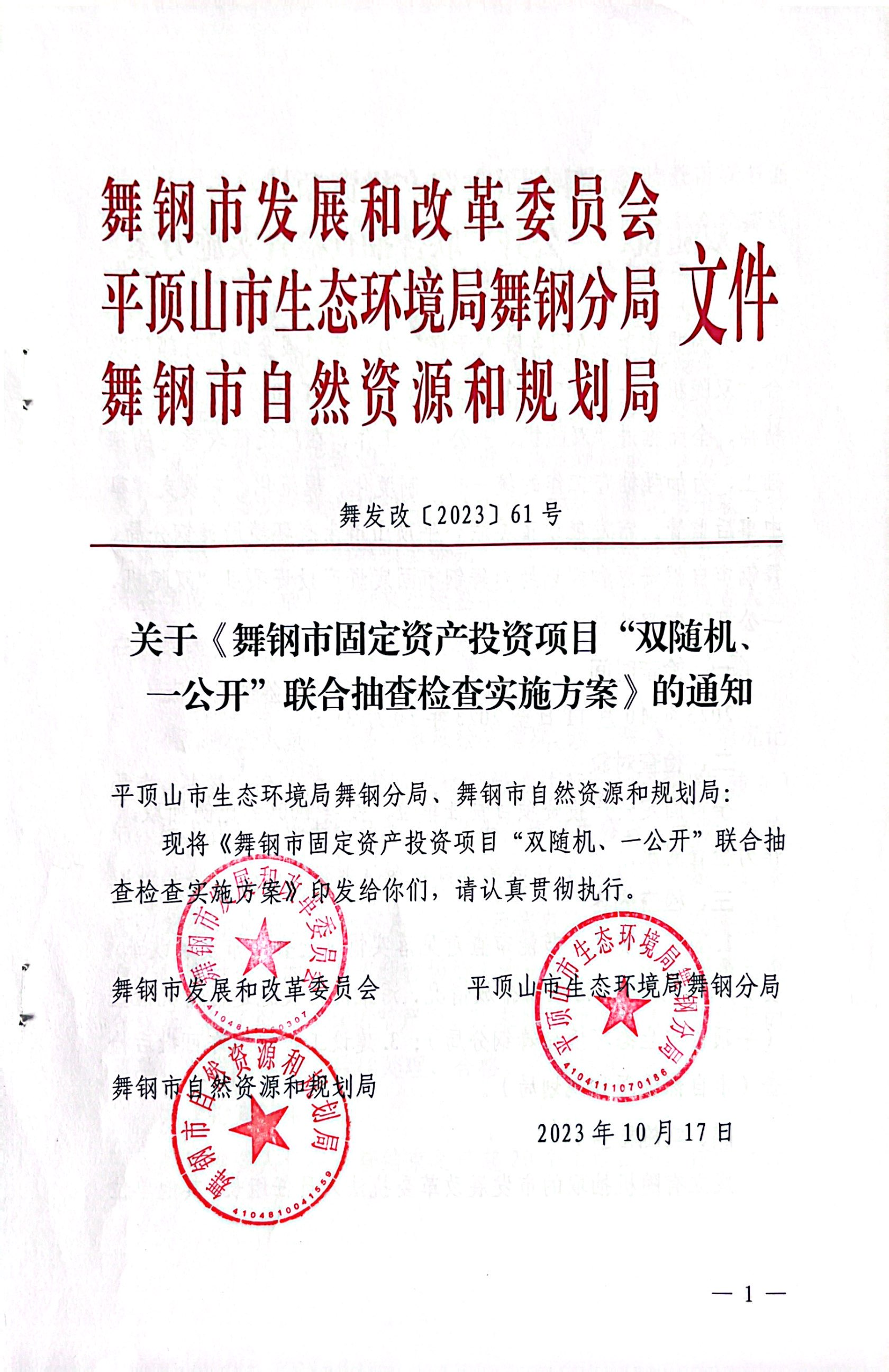 关于《舞钢市固定资产投资项目”双随机、一公开“联合抽查检查实施方案》的通知