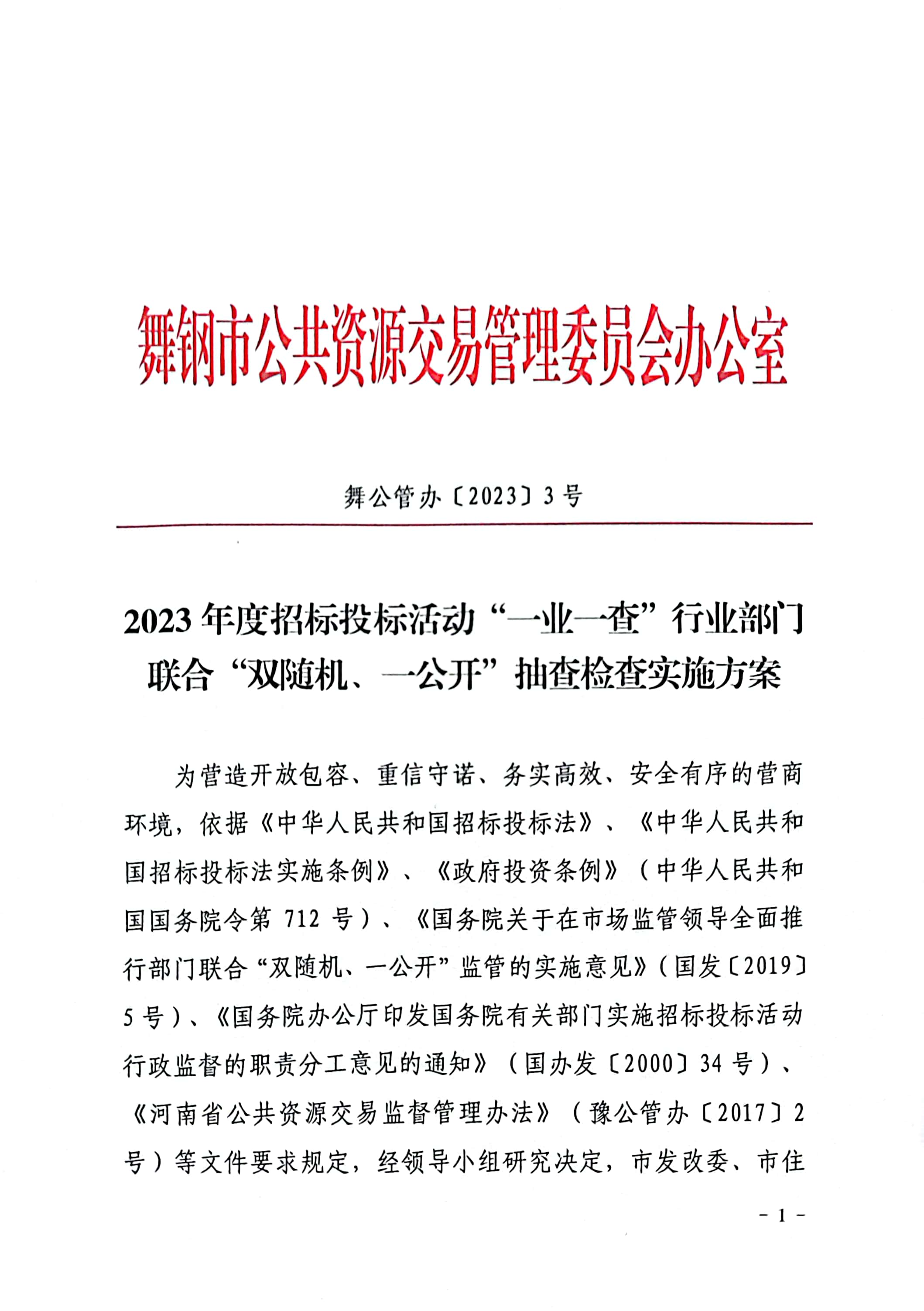 2023年度招投标活动“一业一查”行业部门联合“双随机、一公开”抽查检查实施方案