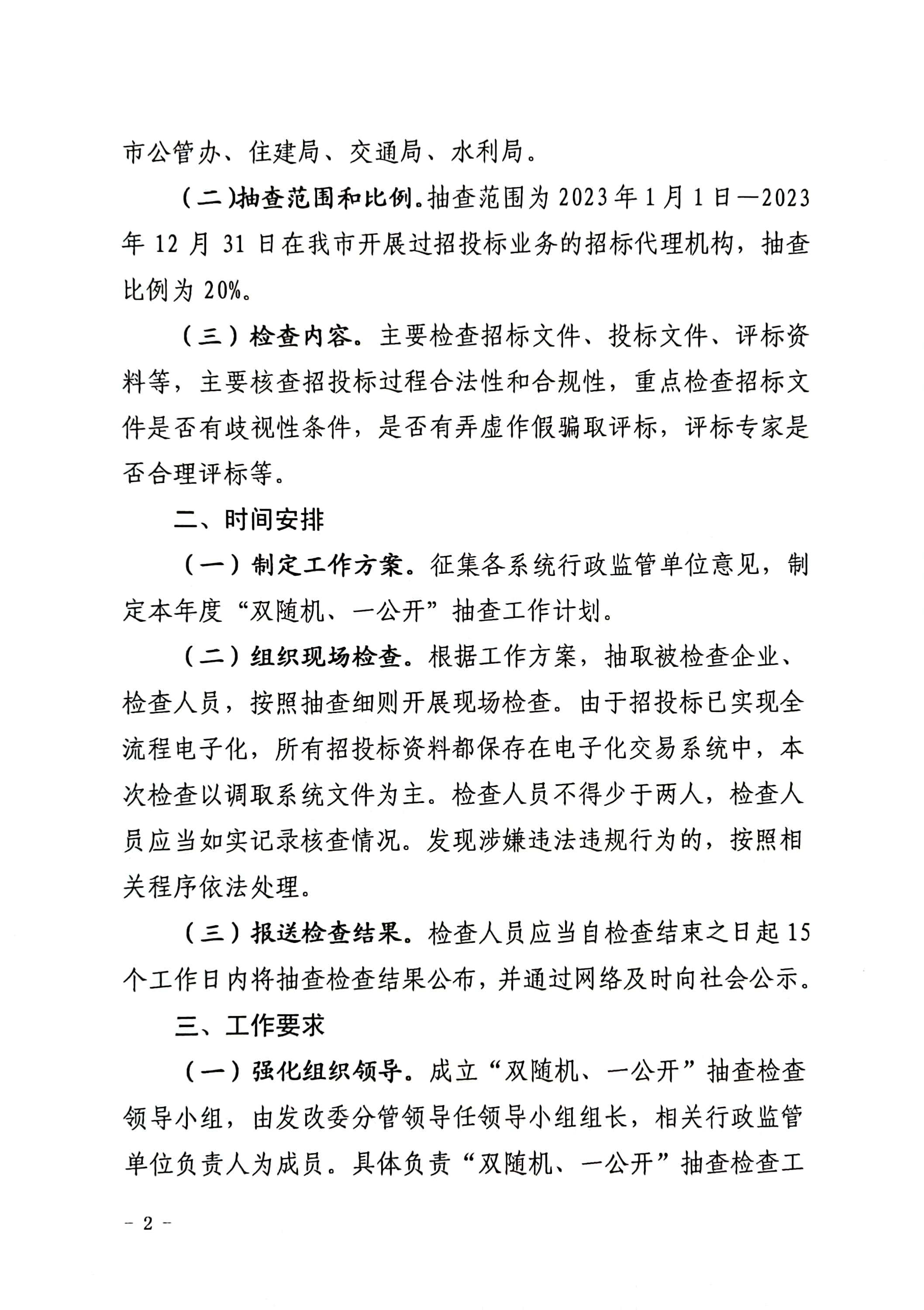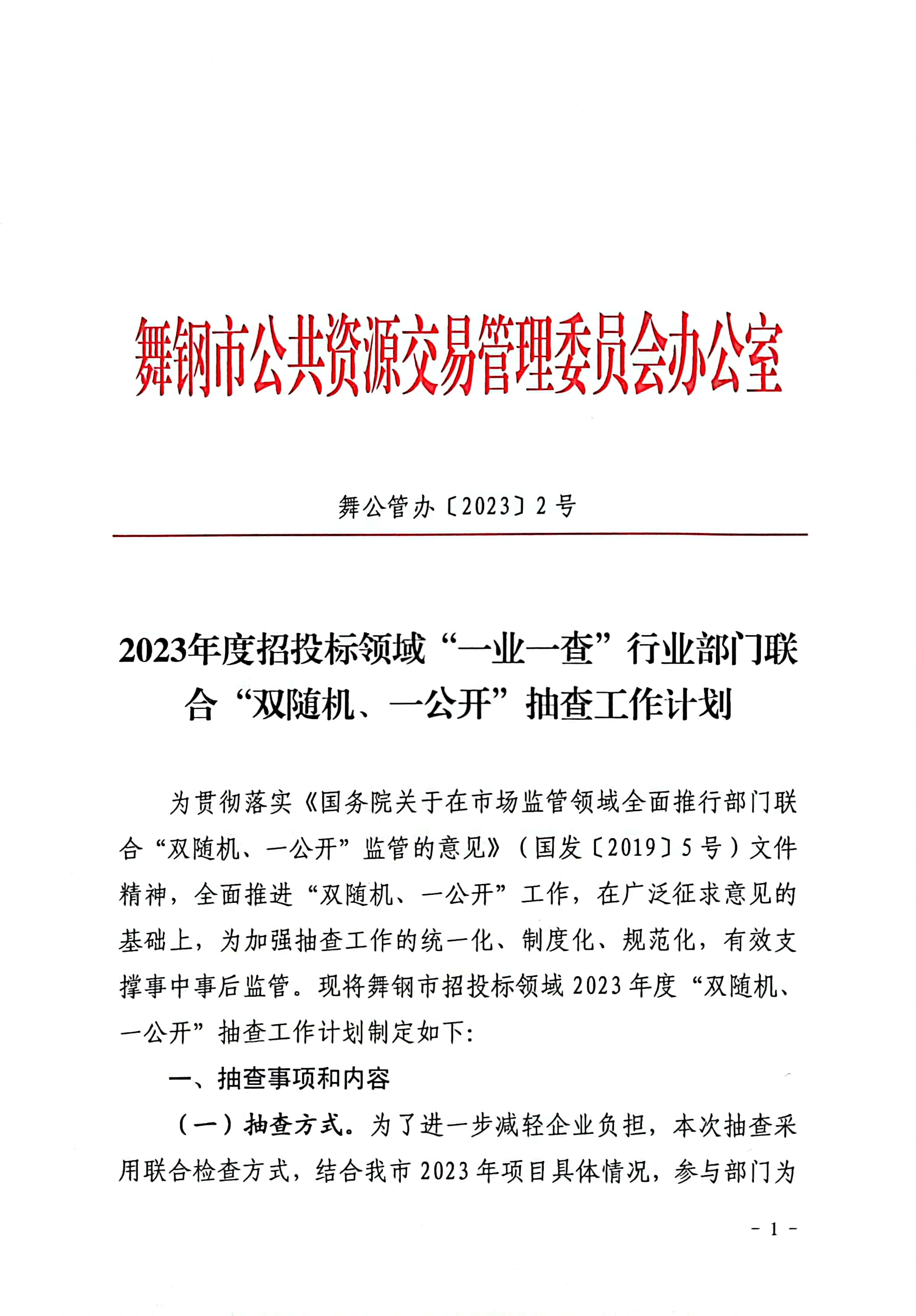 2023年度招投标领域“一业一查”行业部门联合“双随机、一公开”抽查工作计划