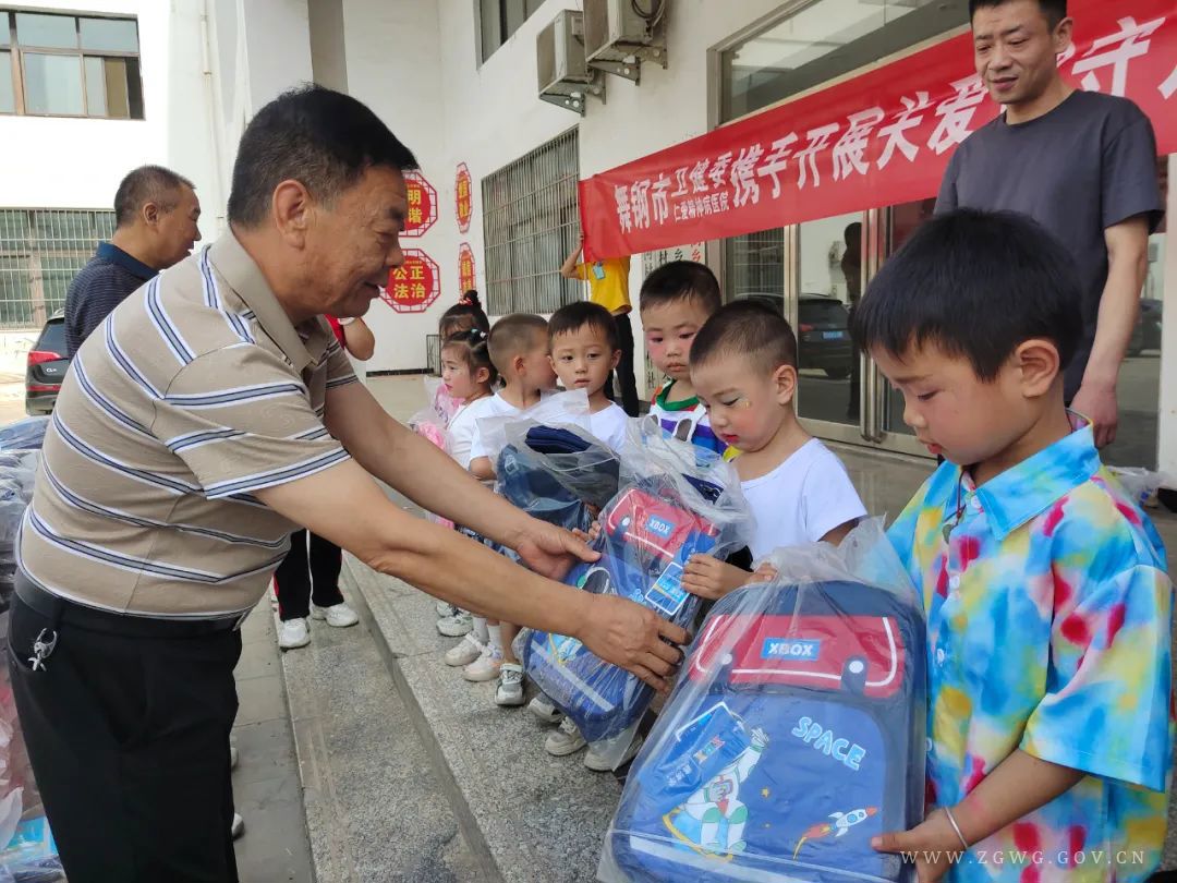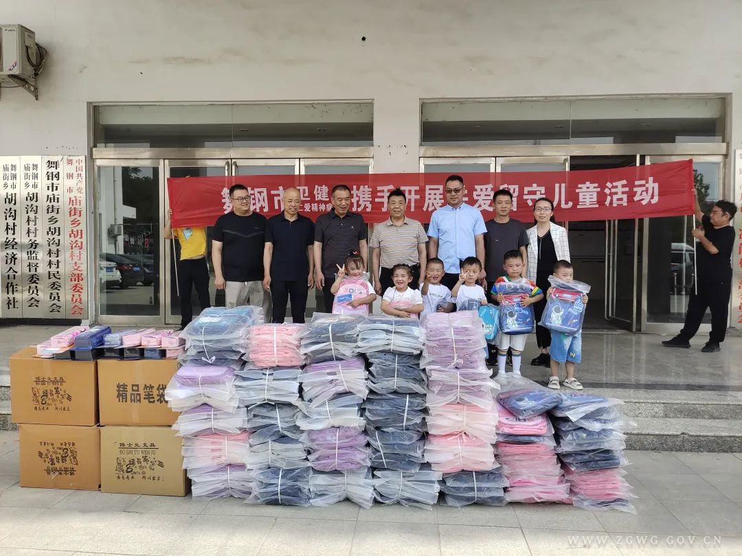 为进一步关心关爱留守儿童的健康成长,助力乡村振兴,在六一儿童节即将来临之际,5月30日,舞钢市卫健委携手仁爱精神病医院到庙街乡帮扶村冷岗村开展关爱留守儿童活动,为村里的165名儿童送去了书包等慰问品和浓浓的节日祝福,让孩子们提前感受到节日的欢乐与社会的关爱。市计生协会副会长杨耀伟参加活动。