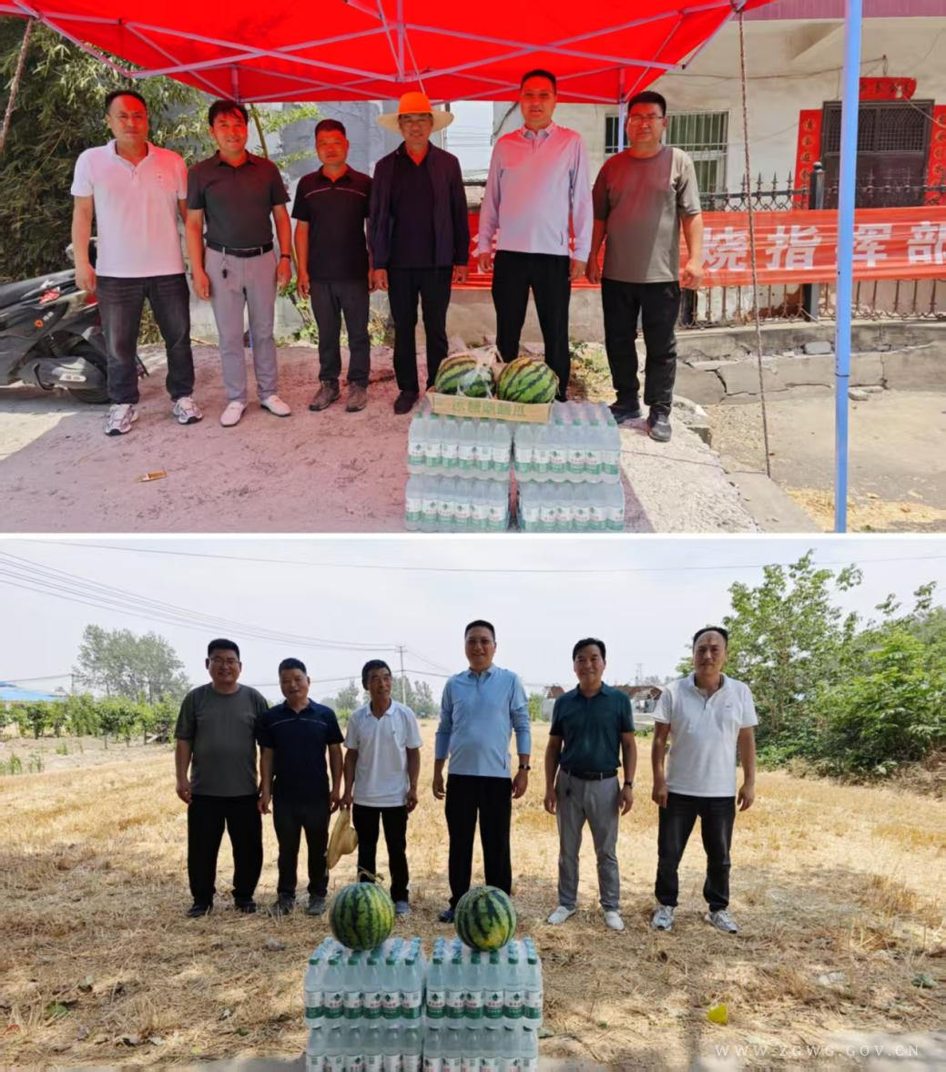 在各村禁烧一线,陈阳一行为值班人员送去西瓜和矿泉水,对他们的辛勤付出表示衷心的感谢,并叮嘱他们合理安排值班和做好防暑降温,以更加积极饱满的精神状态投身秸秆禁烧工作。